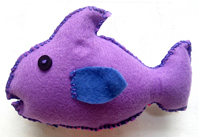 Say hello to purple fish, one of a number of prototypes and experiments in constructing stuffed creatures. He has a dent in this photo and I don't know why.